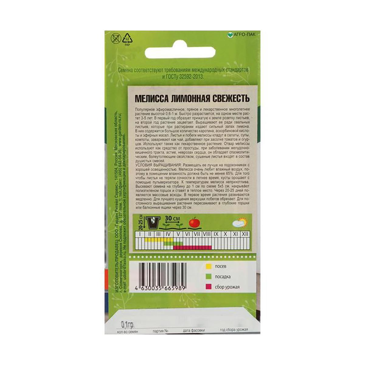 Семена Мелисса "лимонная Свежесть" 0,1 Г "тимирязевский Питомник"