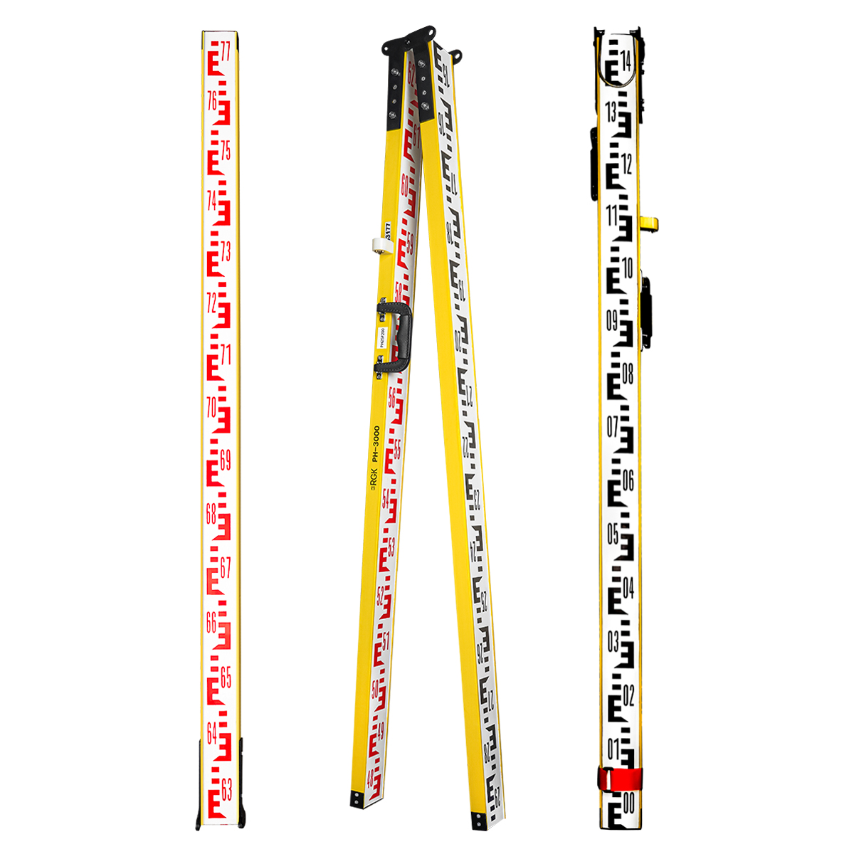 Складная двухсторонняя деревянная рейка 3 м с разницей пяток RGK PH-3000 выполнена по классической схеме из двух шарнирно соединенных брусьев, которые окантованы планками и снабжены металлическими пятками, защищающими торцы от истирания. В рабочем положении изделие раскладывается в прямую линию, позволяя считывать показания с шашечных E-шкал с лицевой и тыльной стороны, обеспечивая измерение превышений путем выполнения серии замеров с помощью оптических нивелиров.