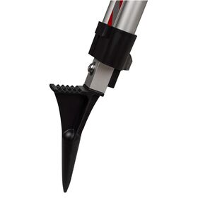 Телескопические стойки фиксируются при помощи винтового механизма. Такой метод обеспечивает надежность и стабильность установки. Ножки оборудованы прочными площадками-упорами, которые позволяют глубоко углубить заостренные наконечники даже в рыхлый грунт, обеспечивая надёжность установки прибора на штативе.