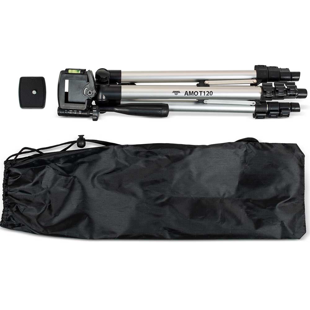 Корпус выполнен из легкого и прочного металла, устойчивого к коррозии. За счет малого веса треногу легко перемещать в процессе ремонта. В сложенном состоянии штатив AMO T120 компактен и без проблем умещается в сумку или рюкзак. Удобный комплектный чехол упрощает транспортировку и хранение.