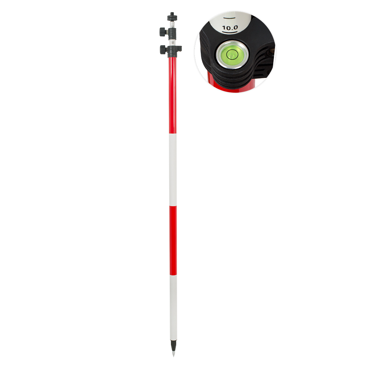 Сверхлёгкая телескопическая веха RGK CLS36-FG, весом 1,3 кг, изготовленная из лёгкого токонепроводящего стекловолокна с регулируемым пузырьковым уровнем, предназначена для установки отражательных систем на высоте до 3,6 м. Оснащена надёжным закрепительным винтовым механизмом, позволяющим надежно фиксировать секции. В стандартной комплектации с вехой поставляется чехол для транспортировки и насадка на наконечник, для работы на нетвердом основании.