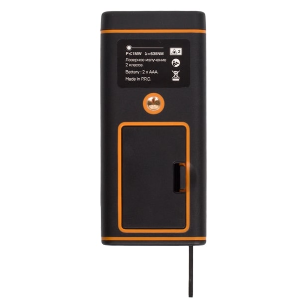 Лазерная рулетка RGK D100 выполнена из качественных материалов. Её корпус надёжно защищает прибор от влаги и пыли и соответствует стандарту IP54. Питается дальномер автономно от 3 стандартных батареек ААА.