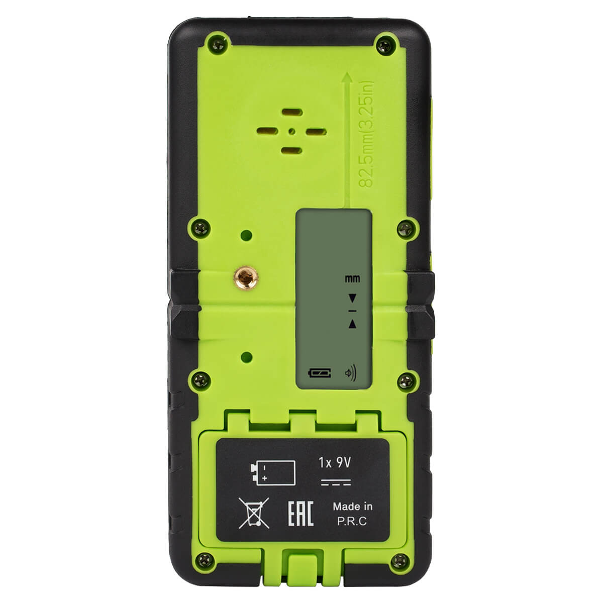 Экраны расположены с обеих сторон приемника для лазерного нивелира RGK LD-88G. Таким образом, специалист может считывать показания, когда держит рейку перед собой, ему не приходится заглядывать вперед, загораживая собой лазерный луч.