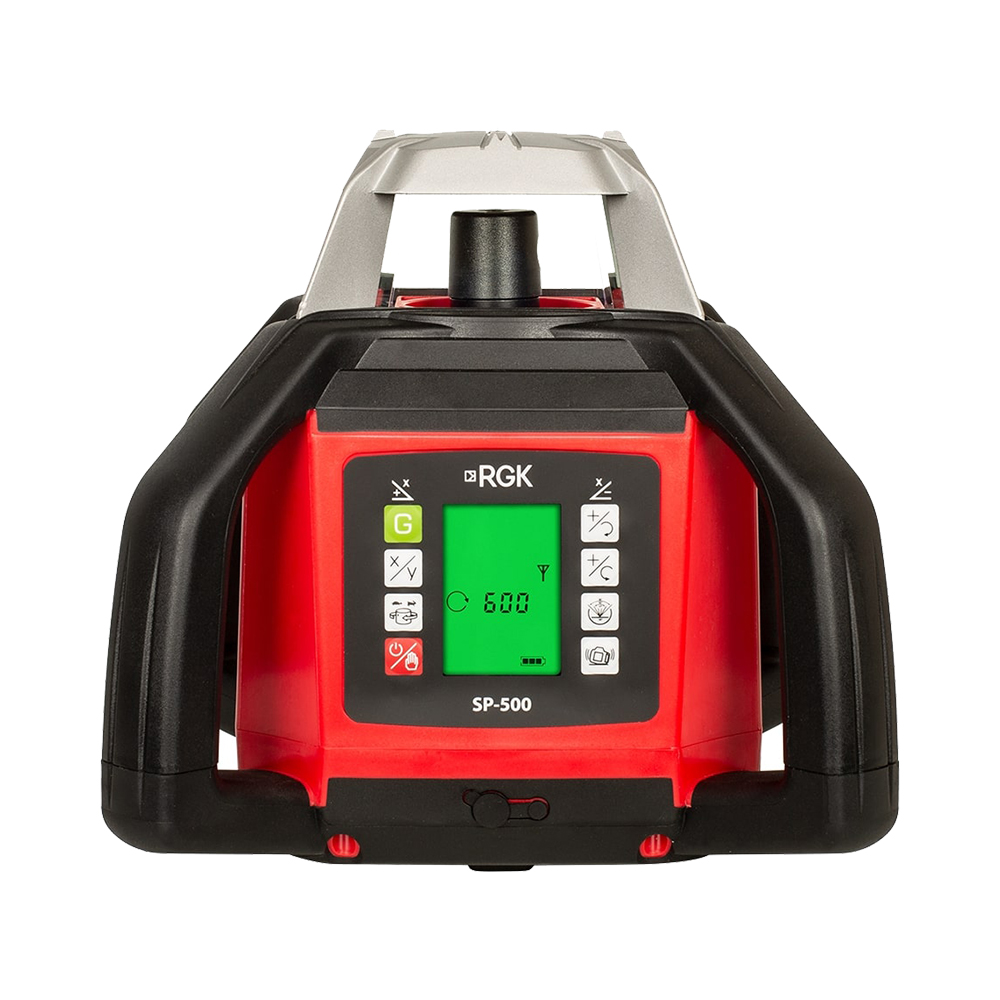В комплект поставки RGK SP-500 включен беспроводной пульт для контроля рабочего процесса и управления всеми функциями на расстоянии до 60 м. Пульт оборудован наглядным дисплеем для отображения статуса уровня.