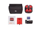 Благодаря компенсатору самовыравнивающийся нивелир RGK LP-103 готов к работе сразу же после включения. Прибор удивительно прост в управлении: все функции нивелира доступны с помощью одной кнопки. При своём функционале это лёгкий – всего 300 г – и компактный прибор. Для установки на стандартный фотоштатив лазерный уровень оснащён резьбой 1/4", а идущий в комплекте переходник на 5/8" позволяет использовать профессиональный штатив.