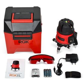 Лазерный уровень RGK LP-72 оснащен лазерным излучателем красного цвета. Точечные указатели на отображаемых плоскостях показывают середину плоскости для удобной разметки поверхностей.