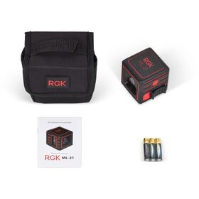 Корпус покрыт мягким прорезиненным пластиком, предохраняющим уровень RGK ML-21 от случайных ударов и падений с высоты до 1 метра. Питание осуществляется тремя батареями типа ААА, батарейный отсек находится на задней стороне прибора. Непрерывное время работы достигает 8 часов.