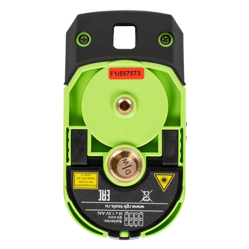 Питание лазерного уровня обеспечивается четырьмя батареями стандарта АА напряжением 1,5 В. Комплект батарей обеспечивает работу лазерного нивелира RGK PR-81G в течении 5 часов. Вы также можете использовать аккумуляторы стандарта АА, которые удобны при частом использовании нивелира. Светодиодный индикатор начнет мигать в момент, когда нужно заменить батареи или зарядить аккумуляторы.