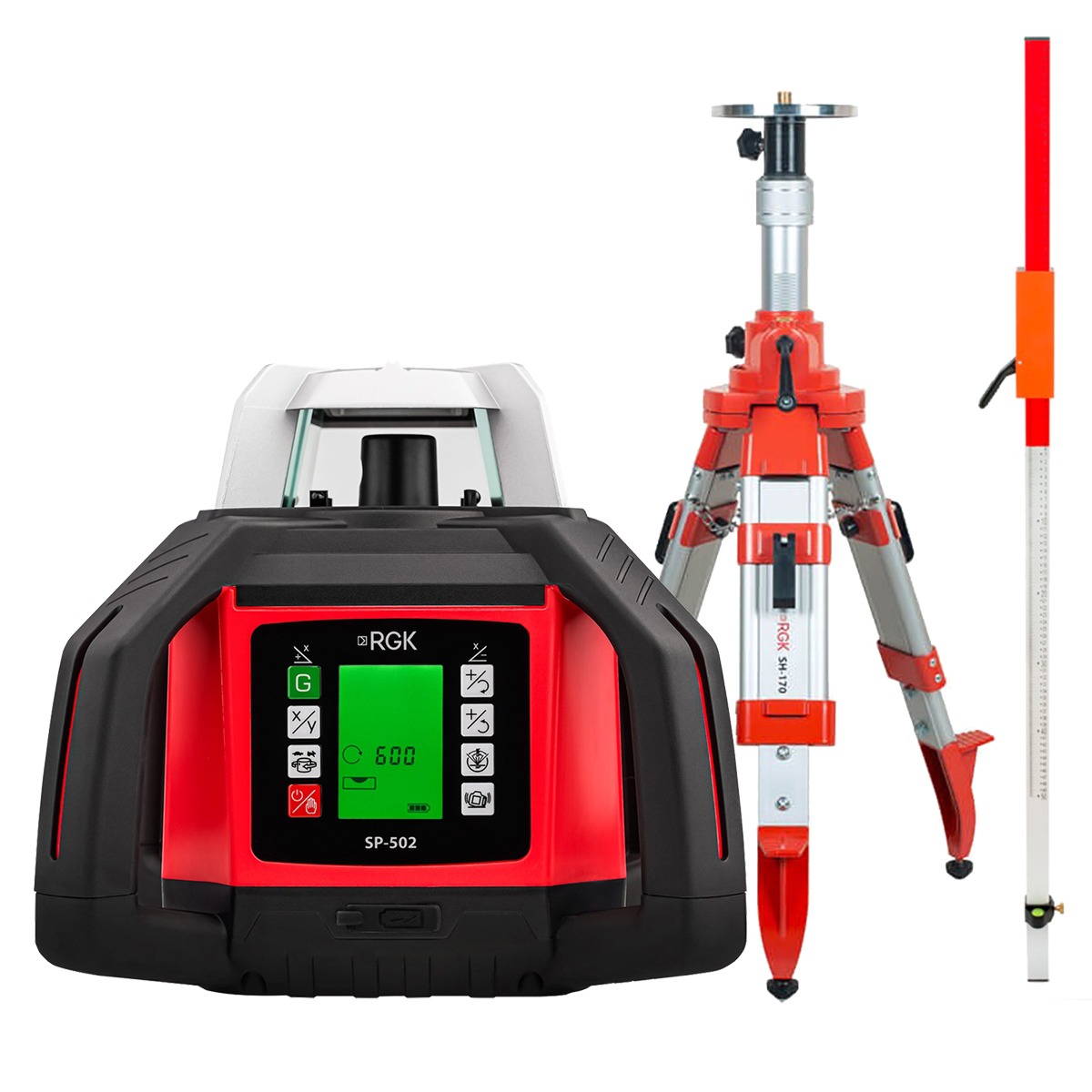 Комплект: ротационный нивелир RGK SP-502 с калибровкой + штатив RGK SH-170 рейка RGK LR-2