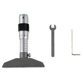 Глубиномер микрометрический RGK GM-25 – наиболее компактная модель в серии механических измерительных инструментов, которая позволяет определять глубину отверстий, пазов и прочих углублений в диапазоне от 0 до 25 мм. Основными сферами применения данного прибора являются производственные предприятия и ремонтные организации машиностроительного комплекса, а также прочие отрасли с высокими требованиями к точности геометрических параметров продукции.
