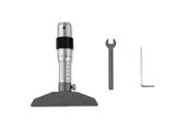В качестве отсчетной плоскости в глубинометре RGK GM-50 используется опорная поверхность основания, выполненная в прямоугольной форме с длинной стороной 85 мм. В месте запрессовки отсчетного устройства предусмотрен винтовой фиксатор. Для удобства барабан оснащен накладкой с продольной насечкой, не допускающей проскальзывания пальцев при вращении микрометрического винта. Измерительные стержни диаметром 8 мм с плоской шлифованной контактной поверхностью и калиброванной рабочей длиной снабжены наружной резьбой с упором для крепежа в выдвижной части микрометрического винта и шлицами под рожковый ключ, который входит в комплект поставки измерителя глубин RGK GM-50.