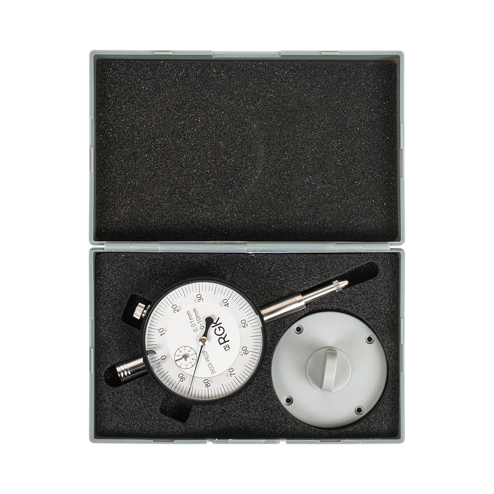 С индикатором часового типа RGK CH-10 удобно работать благодаря крупным цифрам, по которым можно комфортно считывать результаты измерений, не напрягая зрение. Предусмотрен дополнительный циферблат, который отображает количество полных оборотов основной стрелки. Наконечник измерительного стержня, как и другие элементы инструмента, выполнен из высококачественной стали, отличается износостойкостью и долговечностью.