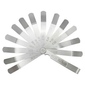 Набор щупов №12 (0,05-1,00) представляет собой объединенный в общем корпусе-обойме комплект из 13 мерных пластин, предназначенный для определения величины зазоров между сопряженными деталями и элементами конструкций в диапазоне от 0,05 до 0,30 мм с шагом 0,05 мм и от 0,40 до 1,00 с шагом 0,1 мм. За счет изогнутой формы измерительной части обеспечивается возможность выполнения замеров в труднодоступных местах. Ручной инструмент оптимально подходит для использования в машиностроении и автомобильной отрасли, в том числе для контрольных измерений при установке поршневых колец, монтаже поршней двигателей внутреннего сгорания, в ходе регулировок привода клапанов и т.д.