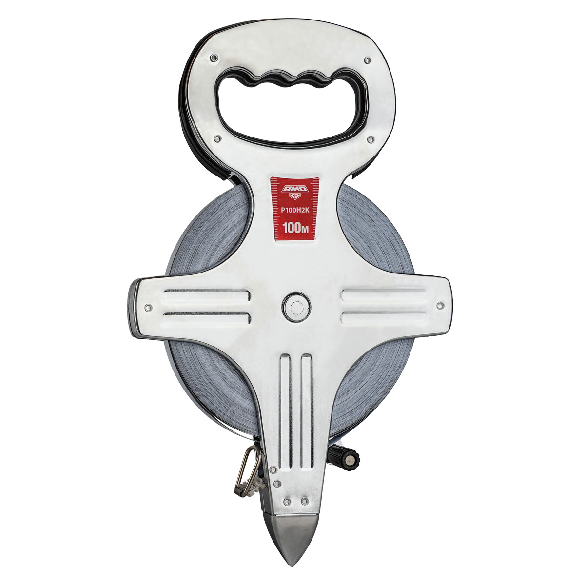 Открытый корпус с эргономичной пластиковой ручкой обеспечивает комфорт в работе и позволяет визуально контролировать состояние измерительной части. Это особенно важно для обеспечения ровности намотки ленты, что напрямую влияет на точность измерений. Кольцо на вытяжном конце мерной ленты позволяет регулировать усилие натяжения, что также способствует достижению максимальной точности измерений. Использование динамометра, груза или ручной регулировки позволяет адаптировать рулетку AMO Р100Н2К под конкретные условия работы.
