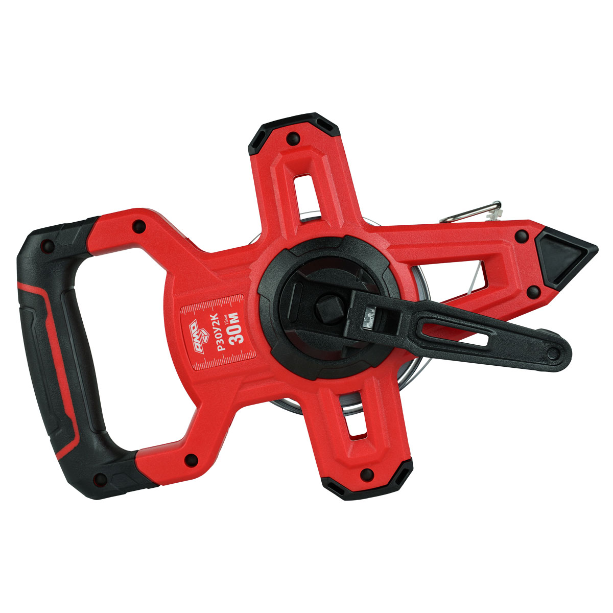 На торцевой части выдвижного элемента рулетки AMO Р30У2К закреплено кольцо, которое упрощает натяжение полотна. Это позволяет легко зацеплять динамометр для нормирования усилия или калиброванный груз при выполнении измерений в вертикальной плоскости. Такой подход делает работу более комфортной и эффективной.