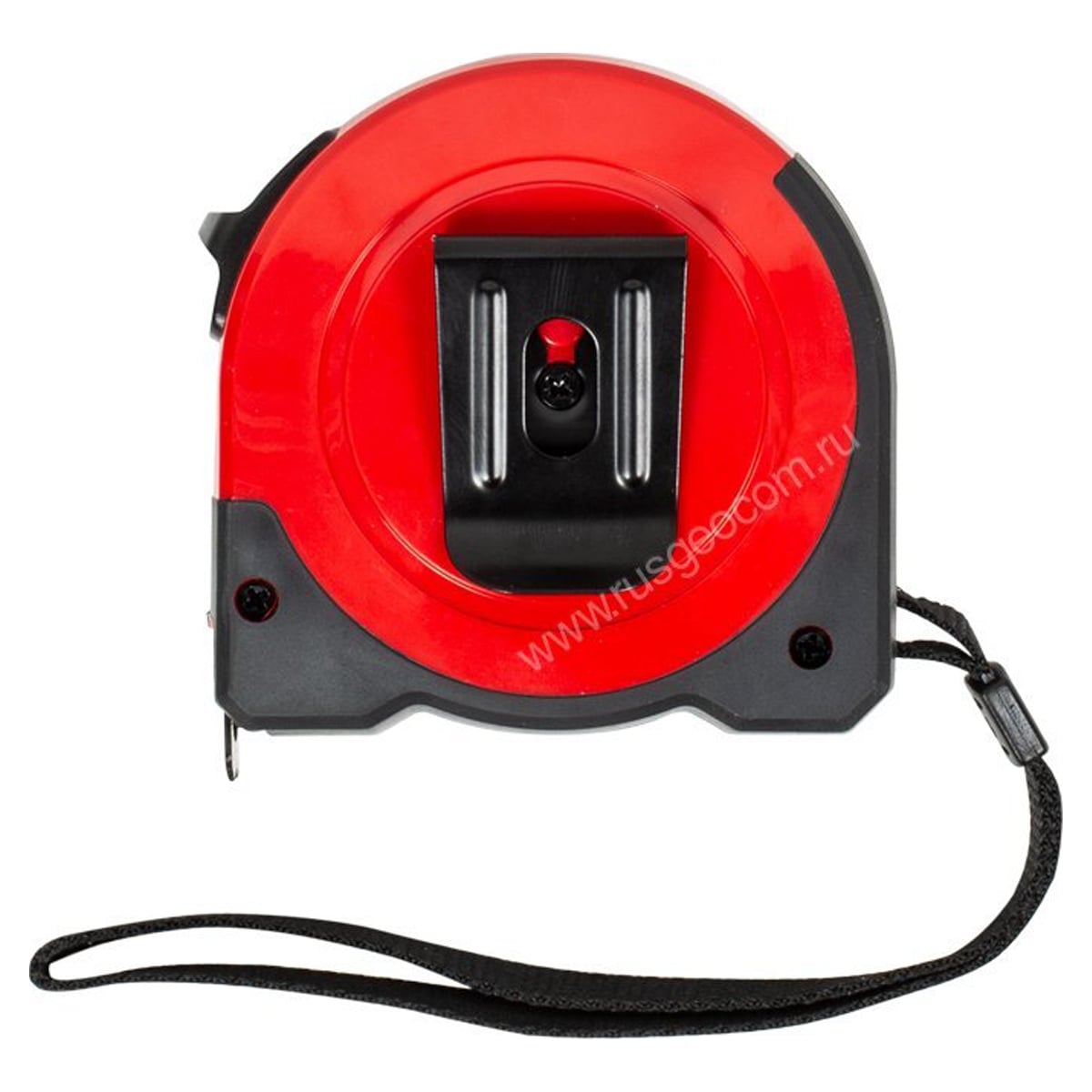 Удобство пользования обеспечивается за счет небольших размеров корпуса. Для исключения выскальзывания рулетки из рук предусмотрены резиновые накладки.