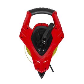 Измерительная рулетка RGK R-50 длиной 50 метров выполнена в открытом корпусе и снабжена механизмом ускоренного сматывания ленты. Нейлоновое покрытие ленты защищает ее от истирания.