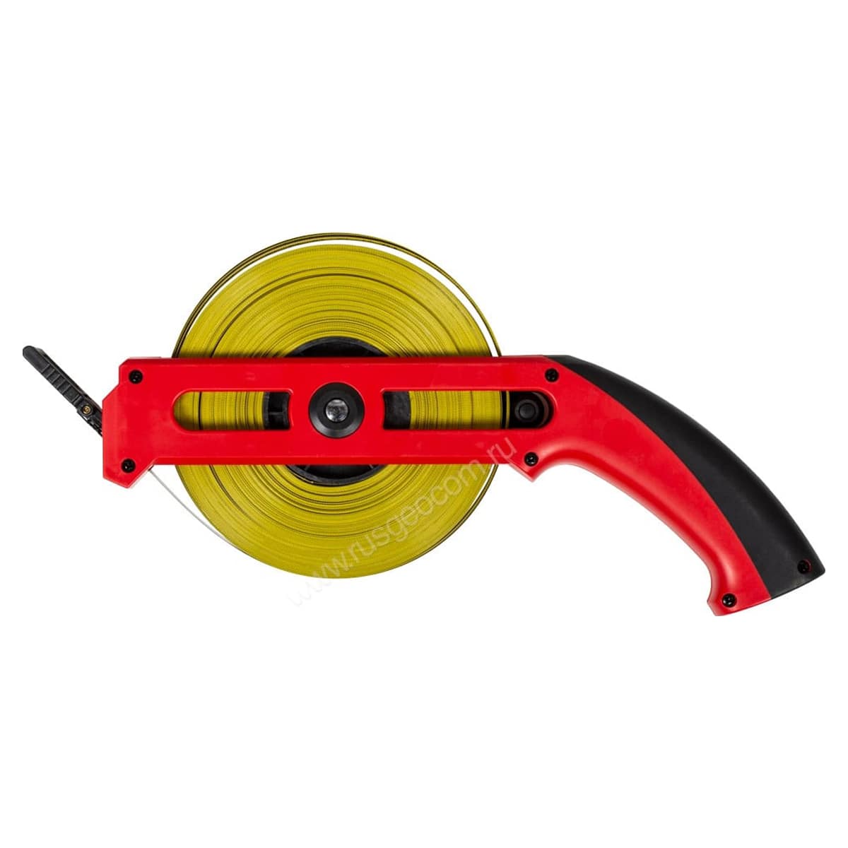 Надежный механизм обеспечивает плавное, без рывков, разматывание полотна, которое облачено в нейлоновую рубашку. Покрытие из нейлона не только препятствует излому, истиранию, выцветанию измерительной шкалы, но и значительно уменьшает бликование, что упрощает восприятие показаний при работе на улице при ярком солнце. Модель в целом устойчива к повреждениям и пригодна для замеров при любой погоде и температуре.