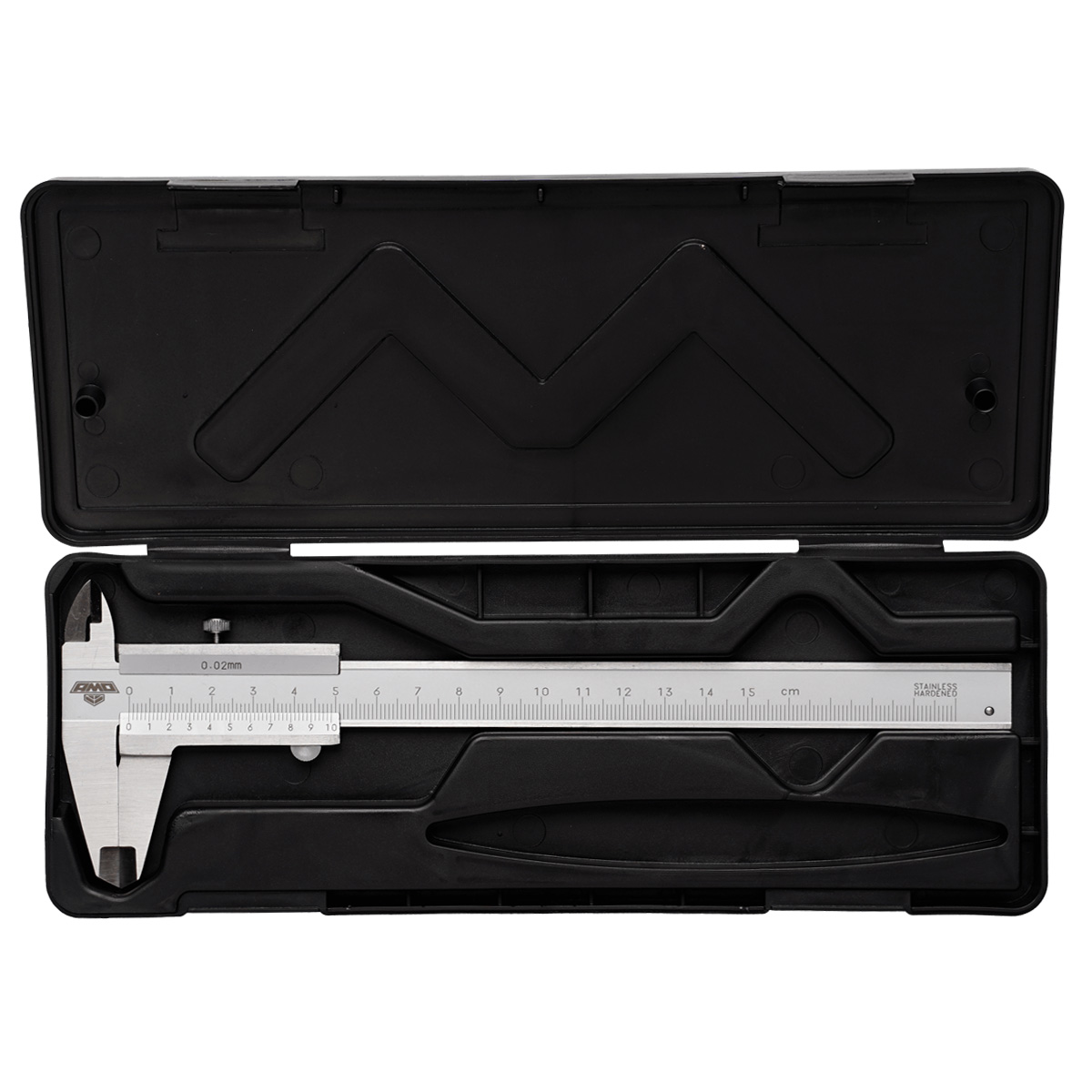 Инструмент устойчив к повреждениям и не подвержен коррозии, за счет чего хорошо подходит для применения на в производственных условиях. В комплект поставки входит футляр для защиты механического штангенциркуля AMO SLM-150 во время хранения и в процессе транспортировки.