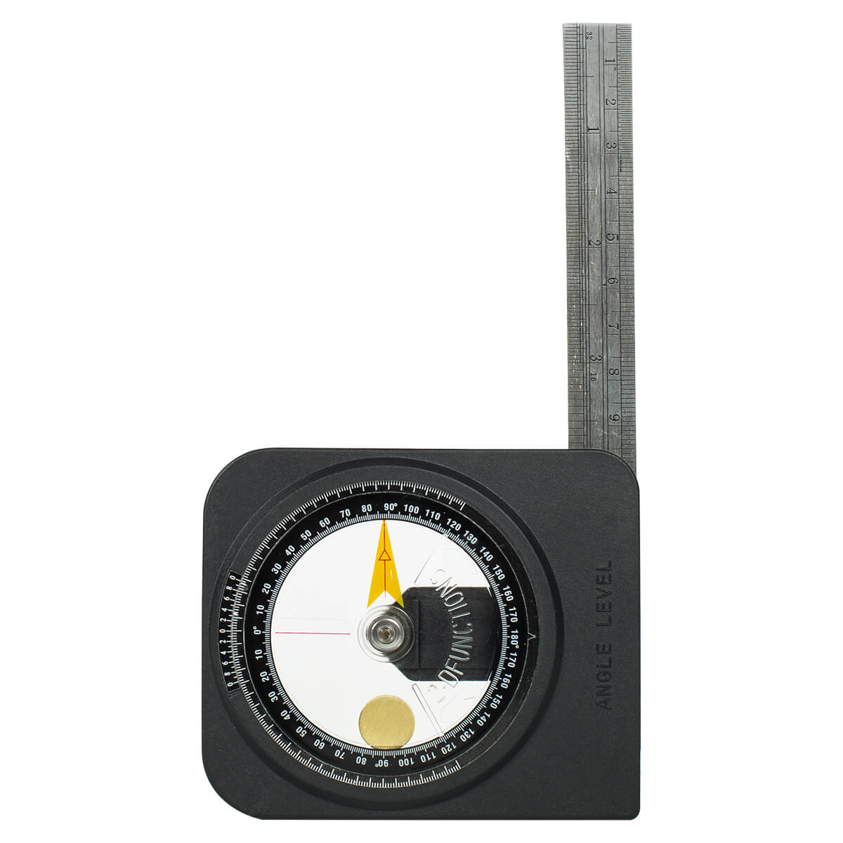 Инклинометр RGK CJQ-1 представляет собой портативное устройство механического типа, предназначенное для измерения углов в вертикальной плоскости, контроля и переноса требуемых уклонов, выполнения разметочных работ. Комплектная 15-сантиметровая линейка дополнительно дает возможность проверять ровность поверхностей, контролировать линейные размеры и производить разметку, а при установке в соответствующее место на корпусе она расширяет измерительную базу, упрощая работу с длинномерными конструкциями.