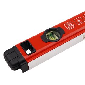 Уровень строительный пузырьковый AMO LVL 60 длиной 60 см позволяет выполнять выравнивание и разметку при проведении строительных, отделочных и ремонтных работ. Инструмент с нижней фрезерованной рабочей поверхностью, изготовленный из алюминиевого профиля толщиной 1,2 мм и снабженный двумя ватерпасами, обеспечивает точность горизонтирования 0,5 мм/м. Красное порошковое покрытие корпуса с контрастными черными вставками делает инструмент хорошо заметным на рабочей площадке, что минимизирует риск случайной утери.