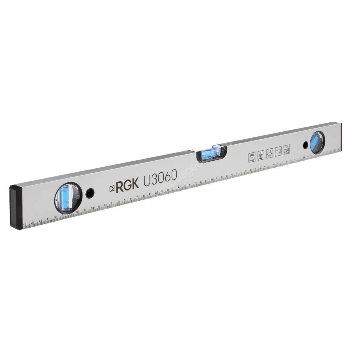 Нанесенная в нижней части на магнитного уровня RGK U3060 миллиметровая шкала позволяет выполнять измерения и мелкую линейную разметку без использования дополнительного мерного инструмента.