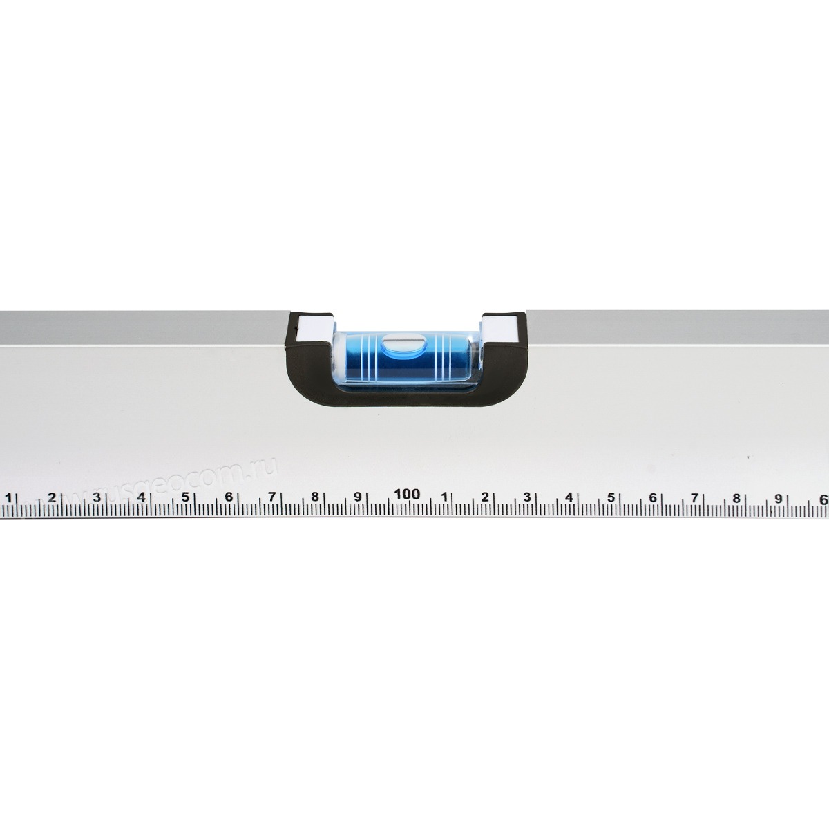 Прямоугольный корпус строительного уровня RGK U3200 изготовлен методом экструзии в формате из алюминиевого профиля толщиной 1 мм. За счет высокого качества исполнения и строгих допусков на производстве в качестве опорной поверхности можно использовать любую плоскость. Измерительная шкала с миллиметровыми делениями, начало отсчета которой совпадает с краем торцевой заглушки, может применяться для замеров и разметки, за счет чего специалист может брать с собой меньше инструментов.