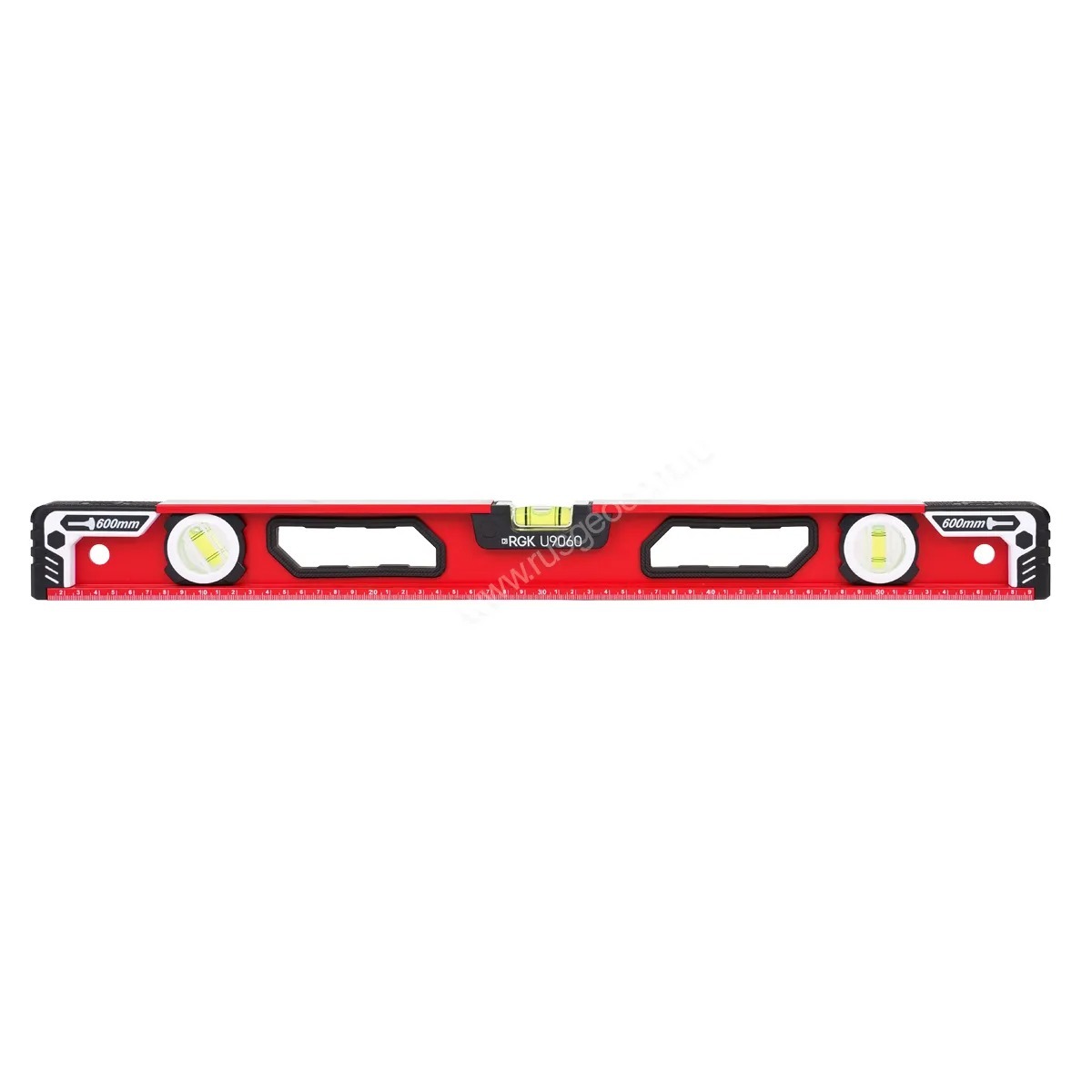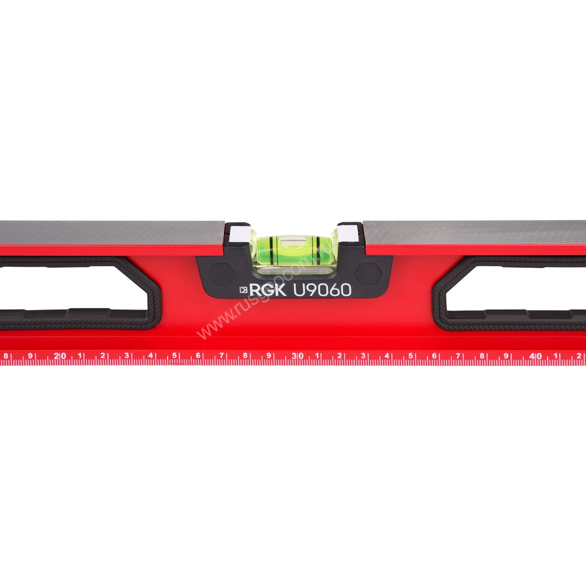 Пузырьковый строительный уровень RGK U9060 обеспечивает точность 1 мм/м. Длина 60 см позволяет использовать инструмент для проведения масштабных строительных работ по выравниванию полов, штукатурке стен и др.