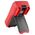 На задней поверхности устройства расположены петля для подвешивания и откидная подставка, которые позволяют установить измеритель так, чтобы специалисту было максимально удобно считывать показания, а руки были свободны для работы с щупами.