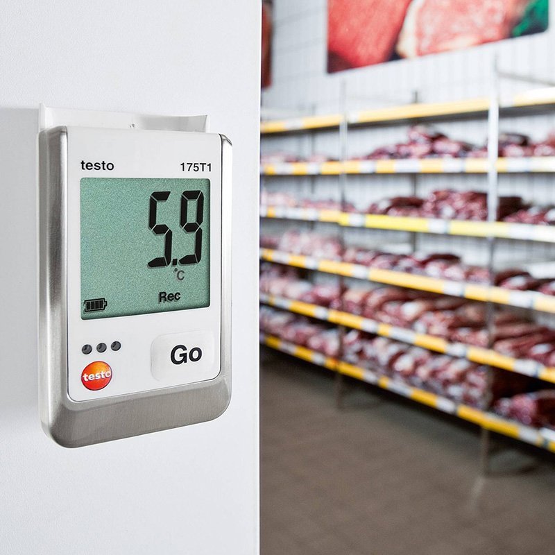 Компактный логгер данных testo 175 T1 предназначен для продолжительного мониторинга температуры в холодильных помещениях и морозильных камерах, а также документирования показаний температуры в процессе транспортировки. Большой объем памяти (1 млн. значений) и продолжительный ресурс батарей обеспечивают возможность считывания данных через большие промежутки времени, несмотря на высокую частоту замеров. Как и остальные логгеры данных, testo 175 T1 протестирован специалистами центра ATP (TÜV Süd) в соответствии с требованиями DIN EN 12830 в рамках системы НАССР.