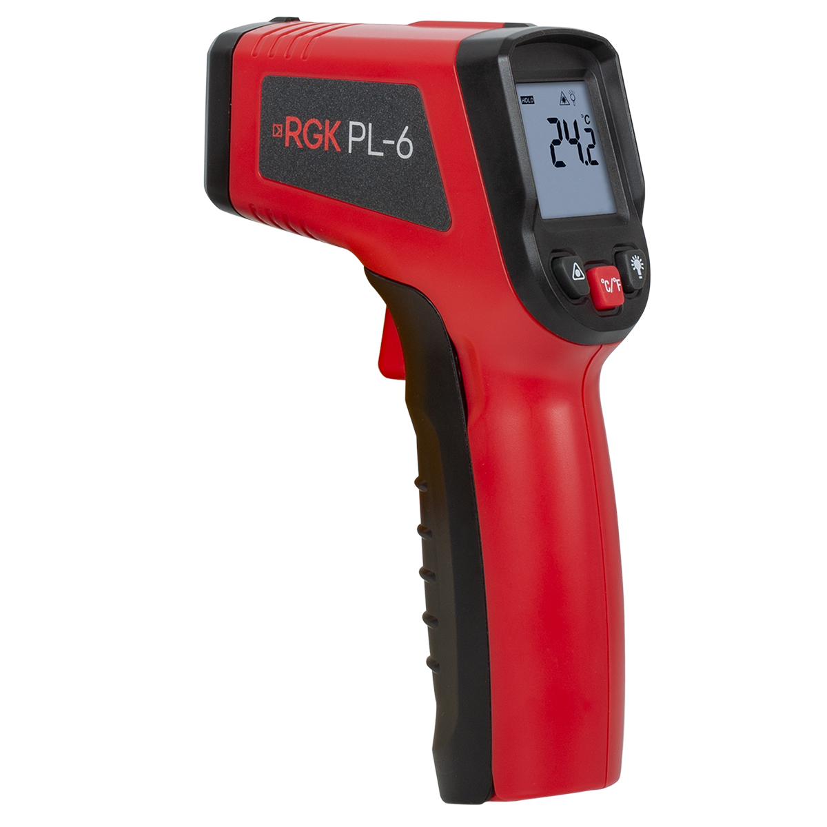 Инфракрасный пирометр RGK PL-6 - это инструмент для бесконтактного температурного контроля поверхностей и оборудования в диапазоне от -30 до +400°C с точностью ± 2°C и шагом 0,1°C. Применяется для получения значений температуры трубопроводов и элементов систем отопления, двигателей, электрооборудования.