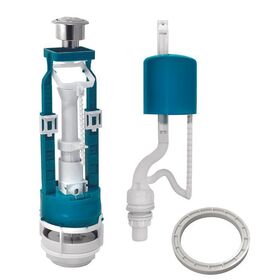 Двухрежимный кнопочный универсальный механизм слива с функцией регулировки малого слива в комплекте с нижним наполнительным клапаном противодавления.