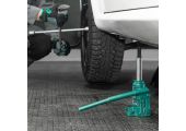 - Удобное хранение и транспортировка — домкрат весит всего 2,2 кг, а благодаря съемному рычагу не занимает много места.