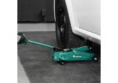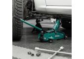 - Маневренность — благодаря поворотным колесам домкрат можно быстро подвести под груз.