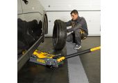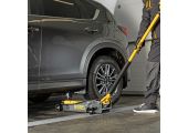 - Инновационная усиленная конструкция — боковые крылья обеспечивают дополнительную жесткость и увеличивают металлоемкость, а также повышают удобство подката и регулировки домкрата под автомобилем.