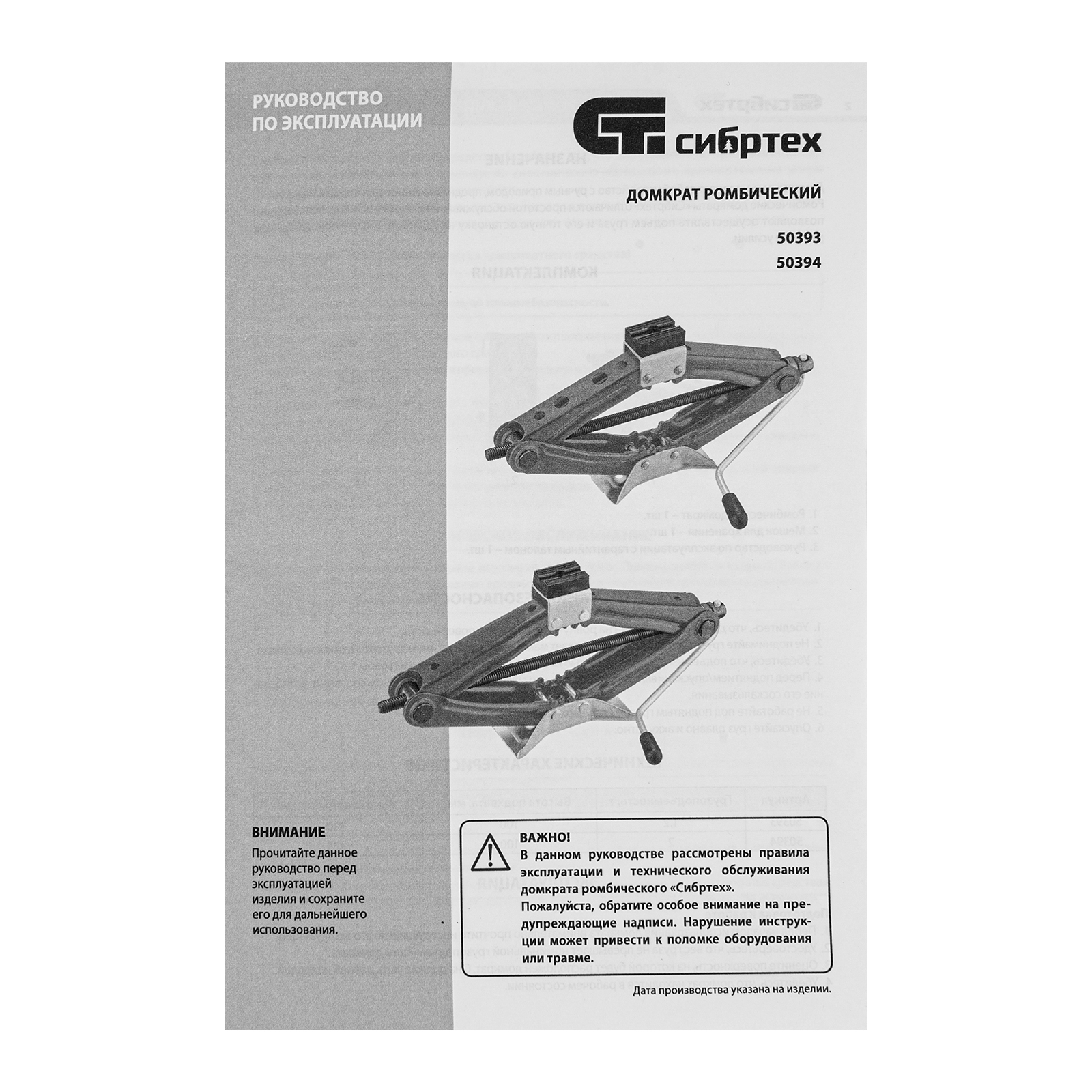 Домкрат ромбический 1,2т, 100-350 мм Сибртех СИБРТЕХ