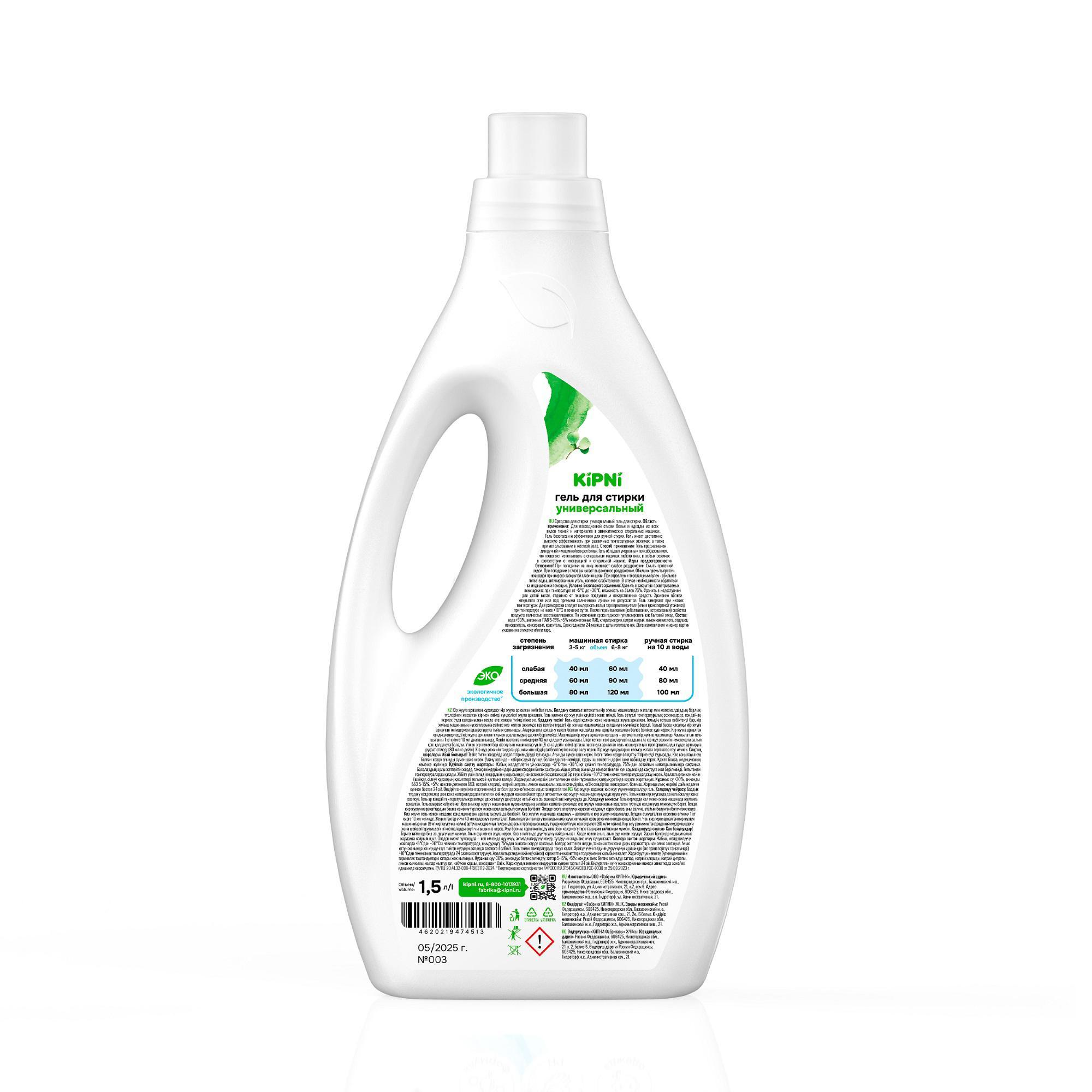 Гель для стирки универсальный Kipni Хлопок, 1,5 л
