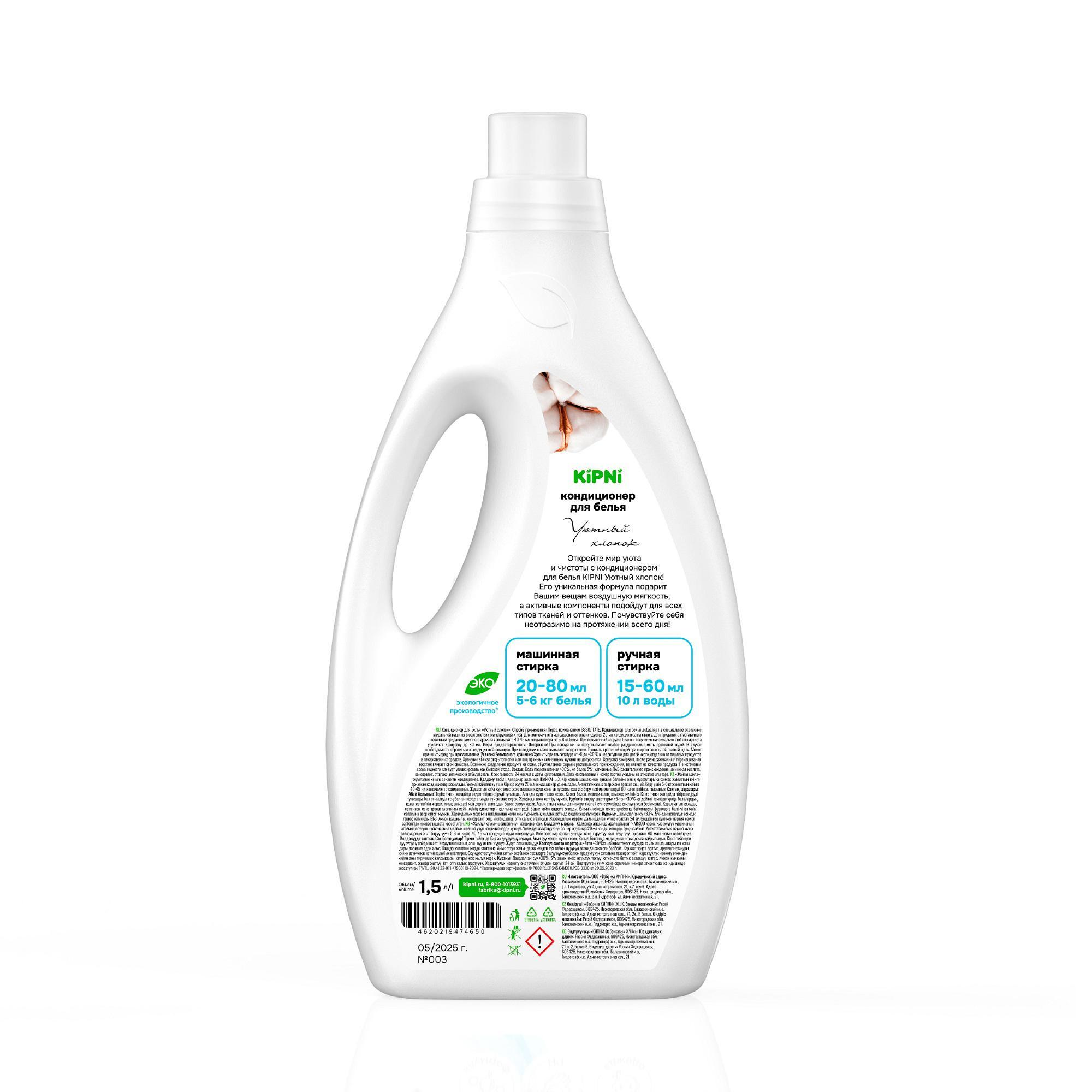Кондиционер для белья Kipni Уютный хлопок, 1,5 л