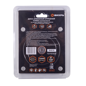 Диск алмазный отрезной Турбо - сегментный, 125 х 22,2 мм, сухая резка Вихрь