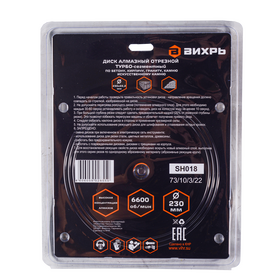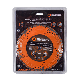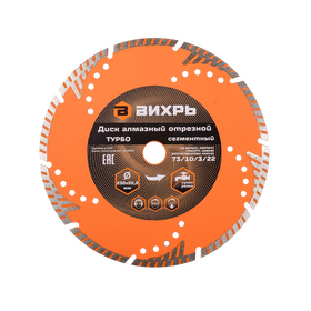 Диск алмазный отрезной Турбо - сегментный, 230 х 22,2 мм, сухая резка Вихрь
