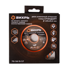 Диск алмазный отрезной Турбо СТАНДАРТ, 125 х 22,2 мм, сухая резка Вихрь