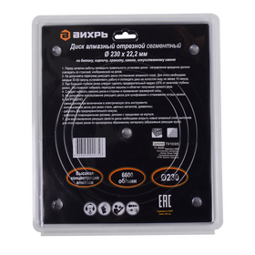 Диск алмазный отрезной ВИХРЬ 230х22,2 мм
