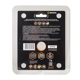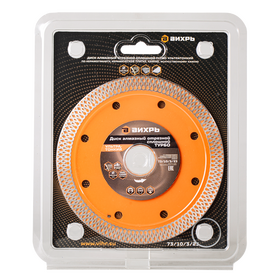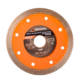 Диск алмазный, сплошной 125 х 22.2 мм, тонкий, сухая/мокрая резка Вихрь