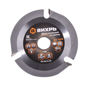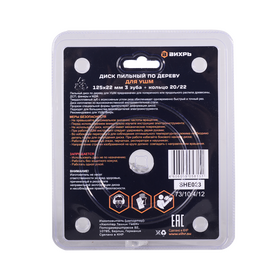 Диск пильный по дереву для УШМ Вихрь 125х22 мм, 3 зуба + кольцо 20/22