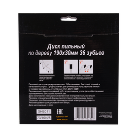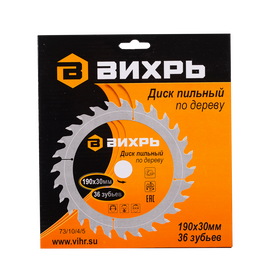 Диск пильный по дереву ВИХРЬ 190х30мм, 36 зубьев
