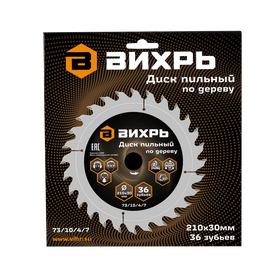 Диск пильный по дереву ВИХРЬ 210х30 мм 36 зубьев