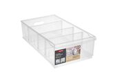 Контейнер универсальный от Econova подойдёт для хранения различных предметов (химии, кухонных предметов, одежды, игрушек и пр.). С помощью нескольких перегородок, которые идут в комплекте, и специальных пазов можно менять размер отделений контейнера по необходимости, приспособив как для мелочей, так и для крупных предметов. Прозрачные стенки позволяют видеть, что хранится внутри каждого из контейнеров.