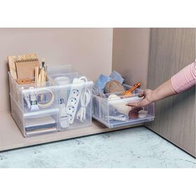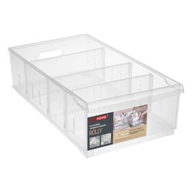 Контейнер универсальный Rolly от Econova подойдёт для хранения различных предметов (химии, кухонных предметов, одежды, игрушек). С помощью нескольких перегородок, которые идут в комплекте, и специальных пазов можно менять размер отделений контейнера по необходимости, приспособив как для мелочей, так и для крупных предметов. Прозрачные стенки позволяют видеть, что хранится внутри каждого из контейнеров.