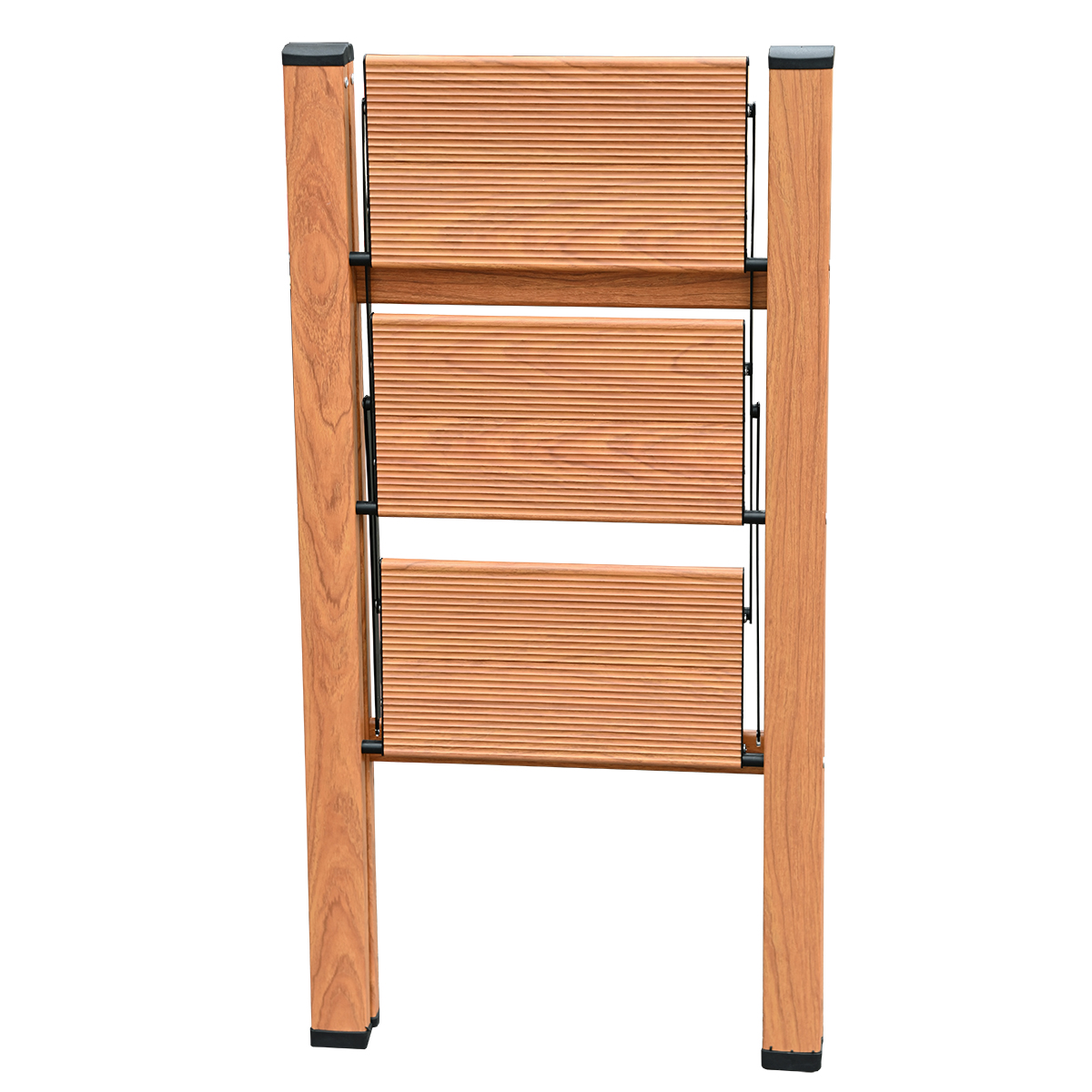 - Планки раскрытия ступеней и удержания стремянки от расползания, а также заглушки ступени изготовлены из высокопрочной стали и покрыты порошковым покрытием.