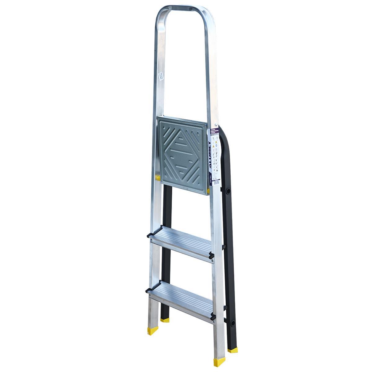 Стремянка комбинированная усиленная Alumet AMS7803, алюминий/сталь, 3 ступени, 1,31 м